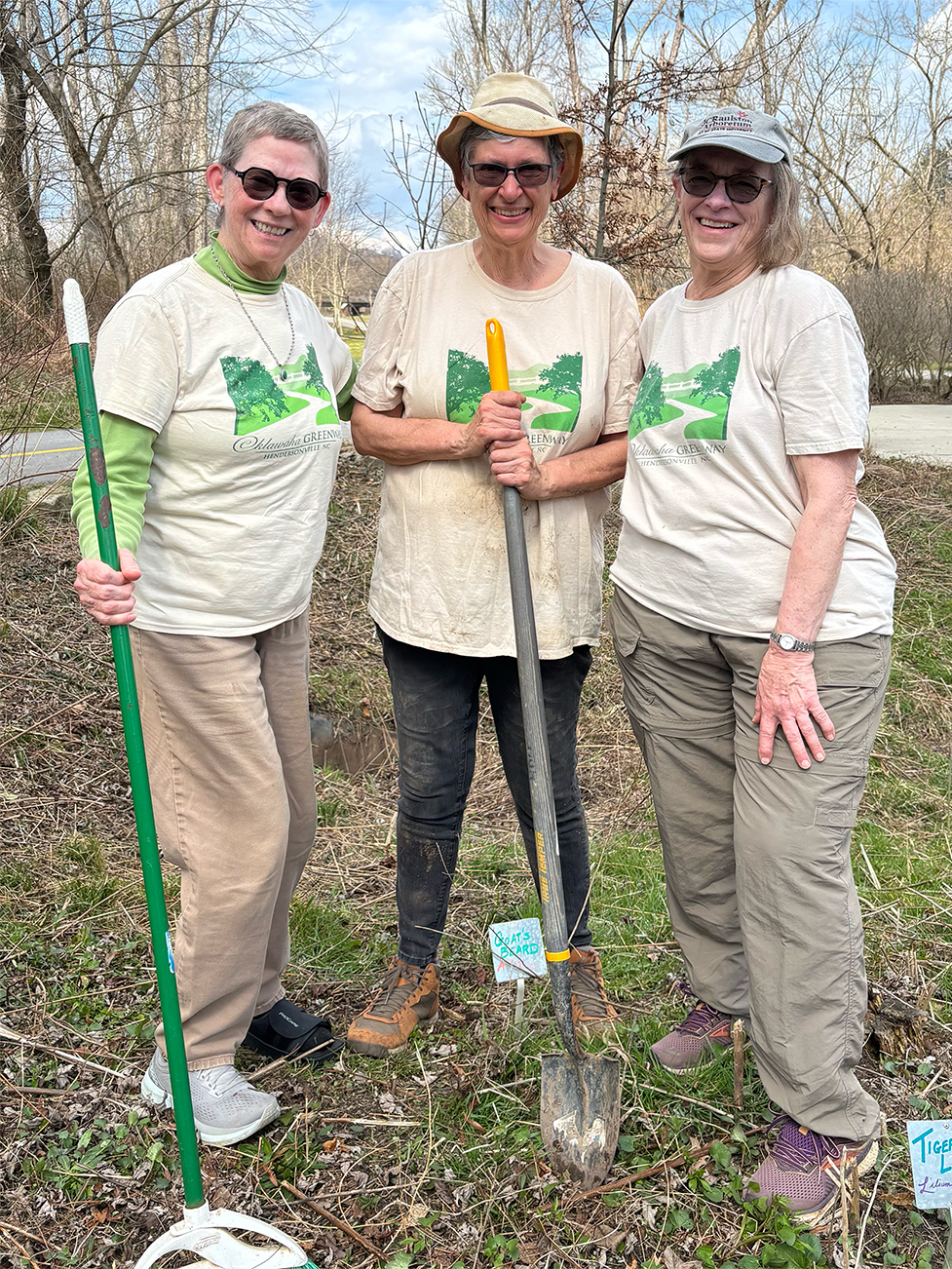 | Friday, Mar 6 | First gardening day of the 2026 season! First gardening day of the 2026 season! Katie Breckheimer. Suzanne Hale, and Sharon Burlingame all sported Oklawaha t-shirts while sprucing up the memorial garden in early March. Contact Katie through the Friends website if you want to get on the gardening reminder list (flexible, 2 hours, once a month). | ![]() |